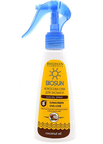 Засмагайте з користю для своєї шкіри разом з кокосовою олією з SPF 8 від Bioton Cosmetics! Цей засіб стимулює синтез меланіну, надаючи шкірному покриву рівний і привабливий золотистий відтінок. Він не лише сприяє отриманню однорідної засмаги, а й захищає епідерміс від шкідливого впливу сонячних променів. Ця кокосова олія також має зволожувальні і живильні властивості, тому насичує клітини корисними мікроелементами, роблячи шкіру еластичною та гладенькою. Особливості Bioton Cosmetics BioSun Sun Oil Spray:- засмагайте стильно та безпечно, завдяки унікальній формулі, яка поєднує натуральну кокосову олію та захист від сонця SPF 8;- захищає від двох типів ультрафіолетових променів: UVA+UVB;- зручна форма спрею дає змогу легко та рівномірно наносити засіб, забезпечуючи комфорт та ефективність;- розроблений з дбайливим ставленням до довкілля, зберігаючи природність та високу якість.