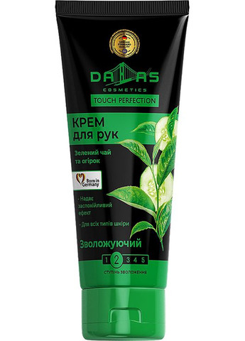 Щоб пом’якшити шкіру рук і відновити її гідроліпідний баланс, використовуйте крем для рук бренда Dalas. Засіб має потужну формулу на основі рослинних компонентів, які глибоко живлять і відновлюють епідерміс, сприяючи покращенню його стану і вигляду. Б’юті-продукт нейтралізує дію зовнішніх факторів, вплив водопровідної води і мийних засобів, роблячи шкірний покрив гладеньким і ніжним на дотик. Особливості Dalas Touch Perfection: - забезпечує інтенсивне зволоження на клітинному рівні;- усуває сухість, лущення, пом’якшує шорсткості;- зміцнює нігтьові пластини;- стимулює регенераційні процеси, сприяє загоєнню ран і тріщин шкіри;- поліпшує синтез природного колагену;- екстракт зеленого чаю має бактерицидні і заспокійливі властивості;- екстракт огірка добре тонізу, освіжає і вирівнює тон епідермісу.