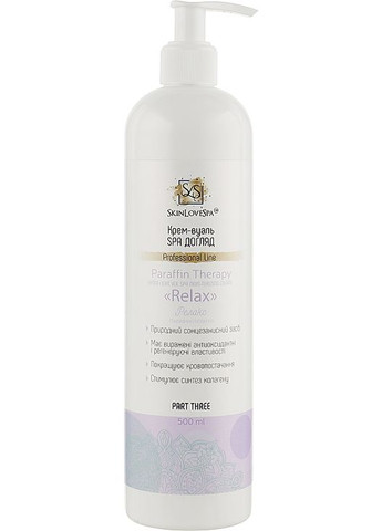 В асортименті українського бренда SkinLoveSpa майстри б'юті-індустрії знайдуть кращі професійні засоби для ефективних косметичних процедур. Крем-вуаль Relax серії Paraffin Therapy може застосовуватися в якості завершального догляду для процедури парафінотерапії після крем-маски. Інтенсивна дія активних інгредієнтів робить шкіру м'якою, еластичною, гладенькою, ніжною і шовковистою. Особливості крему-вуалі SkinLoveSpa Paraffin Therapy Relax: - активні компоненти формули - дует масла ши і олії кунжуту;- містить комплекс вітамінів А, Е, С, В, D;- багатий антиоксидантами, фосфоліпідами, жирними кислотами;- глибоко проникає в структуру шкірного покриву;- забезпечує інтенсивну поживну дію;- активізує і прискорює регенерацію клітин і тканин;- покращує кисневий обмін;- стимулює процес синтезу колагену;- насичує вологою і нормалізує гідробаланс;- робить шкіру більш еластичною і пружною;- приємний аромат.