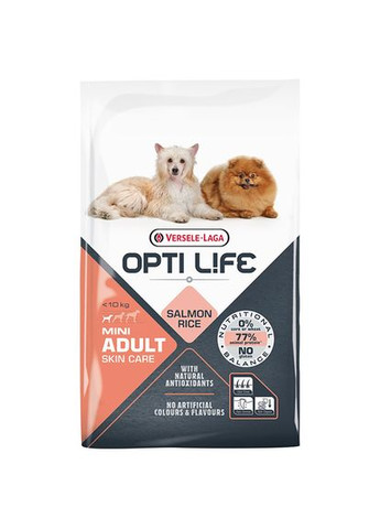 Ваш улюбленець потребує особливого догляду за шкірою та вовною? Оптимальний вибір для мін та малих порід (до 10 кг) – це суперпреміум корм Opti Life Adult Skin Care Mini на основі лосося та рису, що гарантує повноцінне та збалансоване живлення, сприяє здоров'ю шкіри та підтримує шерсть в ідеальному стані. Цей корм ідеально підходить для собак з тьмяною вовною або сухою шкірою, а також для виставкових тварин або під час відновлення після хвороби. У складі корму Opti Life Лосось 77% білків мають тваринне походження, що є запорукою не тільки відмінного стану шерсті та шкіри, але й гарантує легке травлення та гарну консистенцію випорожнень. Особливу увагу привертає той факт, що у складі немає глютену: відсутні пшениця та кукурудза, що значно знижує ризик алергічних реакцій та непереносимості. Крім цього, корм не містить курки, що також є важливим фактором для собак із чутливим травленням або алергією на куряче м'ясо. Високий вміст тваринного білка: 77% - це білок тваринного походження (лосось). 0% кукурудзи та пшениці: у складі виключно рис, як легкозасвоюваний та безглютеновий злак. Без глютену знижує ризик реакцій гіперчутливості, ідеально для собак із чутливим травленням. Блискуча вовна та здорова шкіра вашого улюбленця – це просто з кормом Opti Adult Skin Care Mini! Чому варто купити корм для собак Opti Life Adult Skin Care Mini: спеціально розроблений для міні та малих порід (до 10 кг) з тьмяною вовною або сухою шкірою, а також улюбленців із чутливим травленням; смачний якісний склад із натуральними інгредієнтами задовольнить навіть вимогливих до їжі улюбленців; має правильне співвідношення білків та жирів (24%/17%), достатнє для енергетичних потреб собак малих порід; Opti Coat: здорова шкіра та блискуча вовна завдяки: – лососю та олії лосося (як джерелам Омега-3 та Омега-6 жирних кислот); – біотину, який сприяє відновленню натуральної яскравості забарвлення, здоров'ю шкіри та кігтів, допомагає розщеплювати жирні кислоти та покращує засвоюваність білків та жирів; – підвищеному вмісту цинку: стимулює природний захист шкіри, зменшує запалення та подразнення, робить шерсть блискучою, знижує її випадання, підтримує імунну систему; – підвищеного вмісту міді: бере участь у виробленні меланіну, що допомагає підтримувати насичене забарвлення вовни, сприяє виробленню колагену, покращує еластичність шкіри та її захисні властивості, важлива для правильного обміну речовин та запобігає проблемам зі шкірою та вовною, наприклад тьмяність та ламкість; br /> – оптимальне співвідношення жирних кислот Омега-3 та Омега-6 покращує якість вовни та зменшує запалення шкіри; Opti Digest+: оптимальне травлення та здоров'я мікрофлори кишечника завдяки вмісту легкозасвоюваних інгредієнтів, додаванню дієтичної клітковини та пребіотиків (ФОС 0.1%, МОС 0.1%), а також відсутності у складі курки, пшениці (без глютена), що дуже важливо для собак малих порід; Opti Dental: здоров'я зубів завдяки адаптованій гранулі (розмір 9 мм та форма) та додаванню дієтичної клітковини; Opti Heart: з таурином для оптимальної підтримки серця; Opti Immunity: активний і здоровий собака з міцним імунітетом завдяки доданню натуральних антиоксидантів (розмарин, зелений чай) та підвищеному вмісту вітаміну С та вітаміну Е; Opti Joint: здорові суглоби завдяки добавці глюкозаміну; розроблений та рекомендований дієтологами та ветеринарами; без штучних ароматизаторів, бар