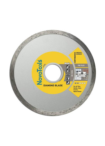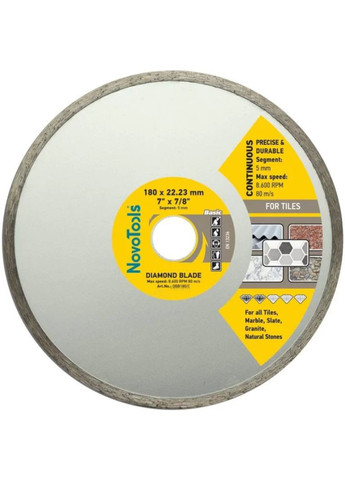 Алмазний диск NovoTools (180х22.23 мм) круг відрізний по кераміці Побутова серія дисків, висота ріжучої кромки 5 мм. Тип: Кераміка. Для сухого й вологого різання керамічної плитки, бетону, граніту, цегли, каменю, шиферу, черепиці, мармуру та інших. Комплект поставки: Алмазний диск NovoTools - 1 шт