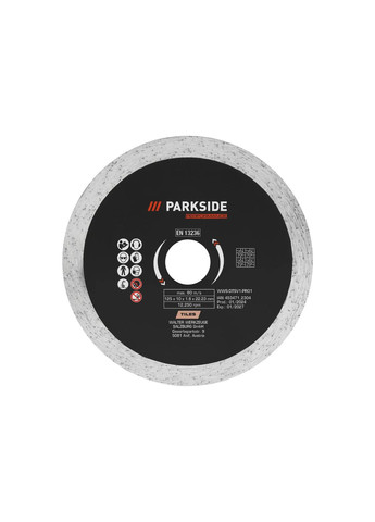 Якісні відрізні алмазні диски ø125мм для болгарок УШМ Parkside Perfomance та інших відомих брендів Milwaukee, Dewalt, Bosch, Metabo, Festool, Ryobi, Black&Decker, Einhell, Makita тощо. Характеристики: Висока продуктивність різання та тривалий термін служби. Повнокромковий диск для вологого різання плитки та кераміки. Прецизійні алмазні відрізні кола з тривалим терміном служби для чистого різання. Підходить для всіх розповсюджених кутових шліфувальних машин діаметром 125 мм. Специфікації Діаметр диска: Ø 125 мм Швидкість: макс. 12 250 хв-¹ Швидкість: макс. 80 м/с. Діаметр внутрішній: 22,23 мм Товщина диска: 1,2 мм Порівняння з відрізним диском PARKSIDE (IAN 441336) На 30% швидше різання На 50% точніший рез Термін служби на 300% довший Розміри: Ø 125 мм Вага: 460 г.