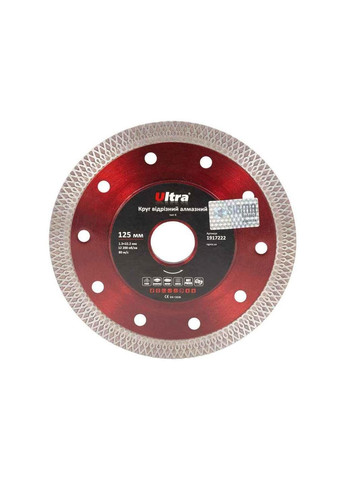 Круг відрізний алмазний універсальний Ø125×22.2мм ULTRA (1917922) призначений для різання граніту та керамограніту, кахлю, плитки, мармуру, каменю з примусовим охолодженням. Корпус виготовлений із міцної сталі, здатної витримати значне механічне навантаження та високу температуру. Добре збалансована основа зменшує вібрацію на інструмент та забезпечує високу надійність під час експлуатації. Оптимально підібрані компоненти металевої звязки з високою консентрацією високоякісних синтетичних алмазів, прикріплені до основи круга методом гарячого пресування алмазів (HOT PRESS), забезпечують тривалу експлуатацію та гарантують тривалий робочий ресурс круга під час роботи навіть із найскладнішими в обробці матеріалами. Суцільна форма кромки дозволяє робити якисний рівний зріз без тріщин і сколів. Характеристики: Високоякісні синтетичні алмази Оптимально підібрані компоненти металевої звязки Технологія гарячого пресування алмазів Суцільна форма ріжучої кромки Збільшена продуктивність та висока швидкість різу Тривалий термін служби