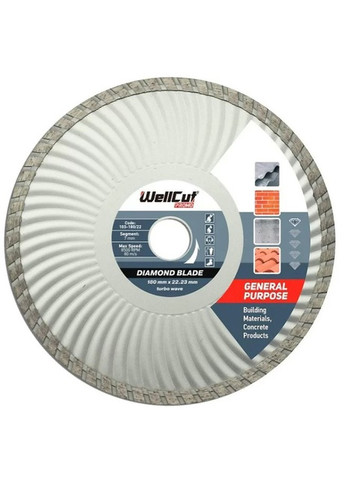 Алмазні відрізні круги WellCut Promo для кутових шліфмашинок для таких матеріалів, як Будівельні матеріали, Бетон Алмазний інструмент більш поширений серед фахівців свого діла та часто застосовуються в будівництві під час різних пиляльних і відрізних робіт і не тільки. Алмазні круги на відміну від абразивних характеризуються більш високою продуктивністю завдяки високій концентрації штучного алмазного зерна в алмазному шарі. Зносостійкість і довговічність алмазних кіл залежить від правильного вибору, з якого матеріалу будуть проводитися роботи та в яких обсягах. Алмазні кругиWellCut серії Promo для побутового використання. Призначені для сухого та мокрого різання стандартних будівельних матеріалів: бетону, цегли, плитки. Комплект поставки: Алмазний диск WellCut - 1 шт