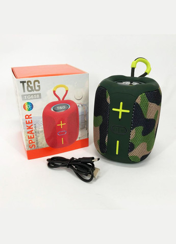 T&G TG-658 Bluetooth Speaker — це компактна колонка, яка ідеально підходить для будь-якого випадку. Влаштовуєте ви вечірку вдома, відпочиваєте біля басейну або вирушаєте в похід на природу, TG-658 забезпечить вам якісний звук і тривалий час автономної роботи. TG-658 обладнана чипом декодування звуку Bluetooth 5.3, що забезпечує стабільне та надійне з'єднання з вашим смартфоном, планшетом або ноутбуком. Колонка також обладнана вбудованим мікрофоном, тому можна використовувати її для викликів у режимі гучного зв'язку. TG-658 обладнана динаміком потужністю 8 Вт, що забезпечує насичений і повний звук. У колонку також вбудований підсилювач басів, тому ви зможете насолоджуватися улюбленою музикою з чистими басами. TG-658 обладнаний вбудованим акумулятором ємністю 1200 мА·год, що легко заряджається від будь-якого USB-зарядного пристрою, і має режими відтворення через Bluetooth, FM-радіо, лінійний вхід, USB і карту пам'яті. Якщо ви шукаєте портативну, міцну Bluetooth-колонку з гарним чистим звуком, T&G TG-658 — ідеальний вибір для вас. Завдяки високоякісному звуку, тривалому часу автономної роботи та міцній конструкції TG-658 ідеально підходить для будь-якого випадку. Характеристики: Версія Bluetooth: 5.3 Дальність бездротового зв'язку: 10 м Ємність акумулятора: 1200 мА·год Час заряджання: 2-3 години Час відтворення: 2-3 години (за нормальної гучності) Динамік: 52 мм Потужність динаміка: 4 Ом / 8 Вт x 2 Частотна характеристика: 70 Гц – 20 кГц Співвідношення сигнал/шум: ≥ 90 дБ Рівень спотворень: < 1% Підтримка: FM-радіо, TF-карта, USB-накопичувач, AUX-вхід Розмір: 90 x 90,5 x 113 мм Вага: 389 г Комплектація Динамік x 1 Зарядний кабель x 1 Інструкція користувача x 1