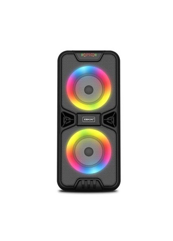 Портативна колонка BKK B86 Акустична система 20 Вт 2 x 4" RGB підсвічування 3000 мАг TF Card Чорний - ідеально підходить для караоке та публічних виступів. Портативна колонка BKK B86 - універсальна насичена акустика для дому, вулиці, вечірок та караоке. Завдяки вбудованим 4" динамікам (2×10 Вт) і LED-підсвітці, вона створює атмосферу свята і забезпечує якісний звук. Підтримує Bluetooth 5.0, відтворення з USB і microSD, FM-радіо, AUX і караоке: колонка оснащена входом для мікрофона. Ємний акумулятор на 3000 мАч забезпечує до 8 години музики без підзарядки. Є дисплей та еквалайзер, щоб адаптувати звучання під ваші уподобання. Переваги: Яскраве LED-освітлення створює святкову атмосферу Вбудований мікрофон та FM-радіо — для караоке та вуличних виступів Довга автономія до 8ч від акумулятора Сучасне з'єднання Bluetooth 5.0 для стабільного підключення Універсальність - USB, microSD, AUX дозволяють підключати різні пристрої Зручне регулювання звуку та еквалайзер під будь-які стилі музики Характеристики: Потужність (RMS): 20Вт (2×10Вт) Діапазон частот: 40-20000 Гц Bluetooth: версія 5.0, дія до 10м Підтримка носіїв: USB, microSD (TF), FM-радіо (88-108МГц), AUX, мікрофонна вставка Ємність акумулятора: 3000мА • год (2 × 1500мА • год) - до 8ч роботи Живлення / заряджання: USB DC 5В LED-підсвічування: RGB ефекти під музику Розміри: 185,3×167,3×410,5мм Вага: ~1,25кг Корпус: ABS-пластик з металевими гратами Чутливість: ≥80дБ Формат: 2.0 (стерео) або 2.1 із пасивними випромінювачами