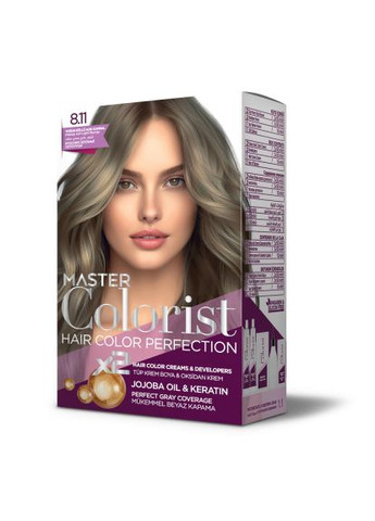 Особлива формула крем-фарби Master Colorist забезпечує глибоке проникнення фарби у волосся та повне зафарбовування сивини завдяки стійким кольоровим пігментам і спеціальним активним речовинам. Олія жожоба у складі живить кожну волосинку і надає вашим локонам неймовірного блиску протягом тривалого часу. Кератиновий бальзам, що наноситься після фарбування, зволожує та зміцнює волосся, полегшуючи розчісування. Вміст упаковки: • крем-фарба – 2 шт.*50 мл • окислювач 6% (20 vol) – 2 шт.*50 мл • бальзам для волосся з кератином – 10 мл • рукавички – 1 пара