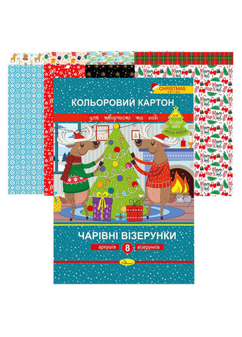 Тип – кольоровий картон. Вид – целюлозний. Формат паперу – А4. Колір – чарівні візерунки. Кількість листів – 8. Кількість малюнків – 8. Щільність – 200 г/м². Пакування – папка-планшет 250 г/м². Розмір: 21,5 х 30 см