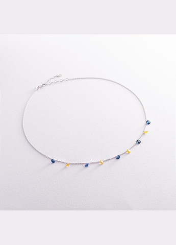 Кольє "Українка" у білому золоті (сині та жовті фіаніти) Метал: біле золото 585" Вставка: фіаніти – 0.45 г Середня вага: 2.07 г Золоте кольє "Українка" з синіми та жовтими фіанітами - це втілення гордості та краси української жіночності. Яскраві кольори виробу символізують національні барви України, а їхнє поєднання у вигляді цієї прикраси відображають внутрішню силу та непереможний дух, які є невід'ємною частиною кожної жінки. "Українка" - більше ніж просто кольє, це потужний символ жіночої сили, незламності та безмежної любові до своєї країни. Ювелірні прикраси обміну і поверненню не підлягають