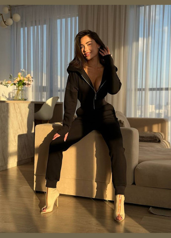 Якщо ви не полюбляєте холод, тоді вам однозначно необхідно придбати наш комбінезон, який створений з теплої трьохнитки на флісі. До комбінезона ми додали капюшон зі шнурком та об'ємну кишеню кенгуру по основній частині виробу. Комбінезон застібається на блискавку та має манжети на рукавах. Нижня частина на манжеті, завдяки чому легко поєднується з високими черевиками чи кросівками. Дуже стильно виглядає з топом, трохи розстібнувши верх. Ми додали термоналіпку з одного боку на штанах та рукавах. Орієнтовні заміри готового виробу: 46-48 р-р: загальна довжина комбінезона 140 см, довжина рукава від плечового шва 61 см, обхват рукава 34 см, ОГ-100 см, довжина брюк комбінезона по внутрішньому шву 70 см, ОТ-96/106 см, OC-106 см. 50-52 р-р: загальна довжина комбінезона 144 см, довжина рукава від плечового шва 63 см, обхват рукава 36 см, ОГ-108 см, довжина брюк комбінезона по внутрішньому шву 70 см, ОТ-100/110 см, OC-114 см. 54-56 р-р: загальна довжина комбінезона 147 см, довжина рукава від плечового шва 63 см, обхват рукава 38 см, ОГ-116 см, довжина брюк комбінезона по внутрішньому шву 70 см, ОТ-102/116 см, OC-122 см. 58-60 р-р: загальна довжина комбінезона 150 см, довжина рукава від плечового шва 64 см, обхват рукава 40 см, ОГ-124 см, довжина брюк комбінезона по внутрішньому шву 70 см, ОТ-116/130 см, OC-130 см. 62-64 р-р: загальна довжина комбінезона 151 см, довжина рукава від плечового шва 64 см, обхват рукава 42 см, ОГ-132 см, довжина брюк комбінезона по внутрішньому шву 70 см, ОТ-120/140 см, OC-138 см. 66-68 р-р: загальна довжина комбінезона 151 см, довжина рукава від плечового шва 65 см, обхват рукава 46 см, ОГ-140 см, довжина брюк комбінезона по внутрішньому шву 70 см, ОТ-130/145 см, OC-146 см.