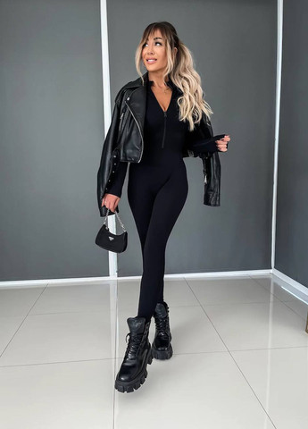Стильний безшовний комбінезон. Цільнокройна модель, шви лише збоку, що дозволяє зробити ідеальний сілует, застібається на блискавку, на рукавах є отвір для пальця. Тканина рубчик на флісі.