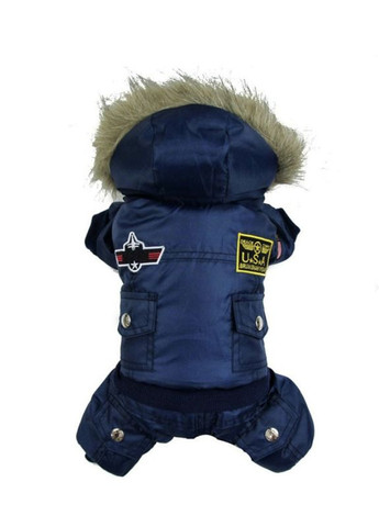 Зимовий теплий комбінезон з флісовою підкладкою і капюшоном - це стильний і функціональний одяг для холодної пори року.  Ваш пухнастий супутник готовий до зимових пригод з синім зимовим комбінезоном з флісовим підкладом - ідеальним вибором для котів, собак і цуценят. Цей теплий синій комбінезон - чудове поєднання стилю та функціональності, що покликане зробити зимові прогулянки вашого улюбленця особливими. Синій колір надає йому стриманого шарму, а флісова підкладка захищаює вашого улюбленця від холоду. Комбінезон оформлений у стилі Уніформи ВПС США, тому ваш улюбленець матиме особливо мужній і стильний вигляд.  Комбінезон підходить також для котів, забезпечуючи їм надійне тепло і затишок у холодні дні. На ваших улюбленців чекають захопливі прогулянки в цьому зручному зимовому комбінезоні з м'яким підкладом. Комбінезон з військовими акцентами додасть індивідуальності образу вашого собаки. Теплий синій комбінезон із флісовою підкладкою та капюшоном для собак і котів доступний у різних розмірах від XS до XL. Розмірна сітка: XS Обхват грудей 31 см, Довжина спини 20 см, Вага виробу 112 г. S Обхват грудей 36 см, Довжина спини 23 см, Вага виробу 123 г. M Обхват грудей 42 см, Довжина спини 27 см, Вага виробу 153 г. L Обхват грудей 48 см, Довжина спини 31 см, Вага виробу 182 г. XL Обхват грудей 53 см, Довжина спини 35 см, Вага виробу 217 г.