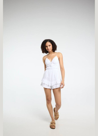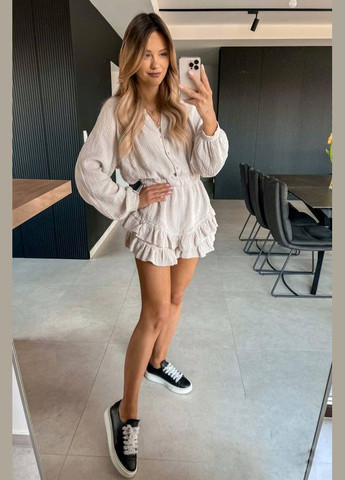 🩳 Низ — короткі шорти з високою посадкою, прикрашені рюшами по краю. Вільний крій та м’яка еластична резинка в поясі роблять модель надзвичайно зручною для повсякденного носіння, прогулянок або навіть пляжного відпочинку.