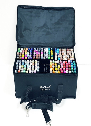 Двосторонні скетч-маркери Sketch Marker в чохлі, набір 24, 36, 48, 60, 80, 120, 168, 262 кольорів маркерів Ці двосторонні скетч-маркери TouchFIVE ідеально підходять для художників, дизайнерів та любителів малювання. Вони мають великий запас чорнила на спиртовій основі, що забезпечує довговічність і якість виконання ваших робіт. Чорнило в маркерах нетоксичне, що робить їх абсолютно безпечними для використання. Усі маркери зручно запаковані в чорну сумку з ручкою, що забезпечує їх зручне зберігання та транспортування. Особливості маркерів: Двосторонні маркери: з одного боку широкий долото (6 мм) для рівних штрихів, з іншого - тонкий наконечник (1 мм) для детального промальовування. Швидке висихання: чорнило швидко висихає після нанесення, дозволяючи наносити другий шар або створювати різні ефекти без змазування. Колір та номер на ковпачку: кожен маркер має на торці ковпачка вказівку на колір та його номер для швидкого вибору потрібного відтінку. Сумка для зберігання: маркери поставляються в зручному чохлі, що дозволяє зберігати їх в порядку та легко транспортувати. Ці маркери підходять для нанесення на різні поверхні, включаючи папір, картон, дерево, тканини, фотографії, пластику та навіть художнє полотно. Для оптимального результату рекомендується використовувати спеціальний щільний папір для маркерів (наприклад, 120 г/м2 і вище), щоб уникнути небажаного відбитка зворотної сторони паперу. Набори доступні в різних кількостях кольорів, від 24 до 262 відтінків, що дає можливість підібрати набір відповідно до ваших потреб для створення складних і багатошарових художніх робіт. Переваги: Великий вибір кольорів Підходять для різних поверхонь Безпечні та екологічні Зручні для роботи завдяки двостороннім наконечникам Ідеально для: Художників та дизайнерів Створення ілюстрацій та коміксів Декорування та малювання на різних матеріалах Розпочніть свою творчу подорож з набором скетч-маркерів TouchFIVE і подаруйте своїм роботам новий рівень професіоналізму та виразності!