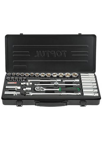 Відправка протягом 1-2 робочих днів. Універсальний набір інструменту 1/4", 3/8", 1/2" 144од. TOPTUL GCAI144R Набір інструменту комбінований TOPTUL GCAI144R 144од, Відмінною особливістю даного набору є наявність слюсарного інструменту, підійде як для СТО так і особистого користування. Дуже вдала комплектація! Весь інструмент у кейсі щільно замикається у своїх гніздах, що виключає випадання. Комплектація набору: 10 торцевих 6-гранних головок від 4 до 13мм та 3 довгі головки на приєднувальний квадрат ¼ дюйми. А також 11 торцевих 6-гранних головок від 14 до 32мм і 3 довгі головки на приєднувальний квадрат 1/2 дюйма. Для кожного з квадратів передбачені тріскачки, коміри, подовжувачі та кардани. Також в комплект включено дві головки свічки. Відмінною особливістю даного набору є наявність слюсарного інструменту, такого як: комбіновані ріжково-накидні ключі, викрутки, пасатижі, переставні плоскогубці, довгогубці та молоток. Весь інструмент у наборі – метричний, ручки прогумовані, приєднувальні квадрати ½ і1/4 дюйми. Також є можливість придбання БУДЬ-ЯКОГО інструменту з набору TOPTUL GCAI8002 окремо. На всі торцеві головки та ключі TOPTUL з набору надається довічна гарантія на заводський шлюб! Призначення: Для дому, Для авто, Універсальний, Для ремонту Кількість граней: Кількість одиниць: Упаковка: Комплектація: BAEA0804~0810 Головка торцева 1/4" 4~10мм BAEB1206~1222 Головка торцева 3/8" 6~22мм BAEA1608~1632 Головка торцева 1/2" 8~32мм BAAR1616 1621 Свічкова головка 16 і 21 мм 1/2" BAED0804~0808 Головка торцева 1/4" E4~8 BAED1610~1620 Головка торцева 1/2" E10~20 CJBG0815 Трискання 1/4" 36 зубців CJHO1228 Трискання 3/8" 30 зубців CJBC1627 Трискання 1/2" 24 зубців CFAC1618 Вороток з шарніром 1/2" 450мм AFAN1610 Вороток Г-подібний 1/2" 260мм CAAA0802~0806 Подовжувачі 1/4" CAAA1203 1206 Подовжувачі 3/8" CAAA1603 1610 Подовжувачі 1/2" CASA0806 Гнучкий подовжувач 1/4" 150мм CAGA1208 Перехідник 3/8"х1/4" 28 мм з отвором CAGA1216 Перехідник 3/8"х1/2" 44мм з отвором CAHA0840~1678 Кардани 1/4", 3/8", 1/2" CAIP0816 Вороток-викрутка 1/4" 150мм (гумова ручка) AAEX0606~2424 Ключ комбінований 6~24мм Hi-Performance AEEA0810~1719 Ключ розрізний 8х10~17x19 GSN-09SH Набір Г-обр.шестігр. 1.5, 2, 2.5, 3, 4, 5, 6, 8, 10 мм DBBB2207 Плоскогубці 7" (chrome molybdenum) DAAQ1A10 Кліщі затискні з фіксатором і кусачками 250мм FAAB5E10 Викрутка шліцева 5.5х100мм FABB6E03 Викрутка шліцева 6.5x25мм FABB6E03 Ключ трубний важільний алюмінієвий FBAB0108 Викрутка хрестова PH1х80мм FBBB0203 Викрутка хрестова PH2х25мм FBGB0210 Викрутка хрестова PH2х100мм (з 6гр. ударна) FSAA0804~0808 Насадка 1/4" 25мм SL3~8 FSBA0800~0803 Насадка 1/4" 25мм PH0-3 FSCA0800~0803 Насадка 1/4" 25мм PZ1-3 FSDA0802~0812 Насадка 1/4" 25мм HEX 2~12мм FSGA0810-0840 Насадка 1/4" 25мм TORX T10~40 з отвором FTAB0808 Тримач біт 1/4"х1/4" HAAA0330 Молоток 300г IAAC1903M Рулетка 3м Тип: Набір ручного інструменту; Набір ручного інструменту: набір слюсарно-столярного інструменту; Кількість інструментів у наборі: 144; Тип упаковки: Пластиковий кейс;