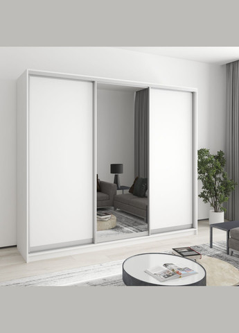 Шафа-купе дводверна MebelStar Уні AL ДСП/Дзеркало 180x45x240 см Аляска білий Дводверна шафа-купе MebelStar Уні AL – функціональна модель, гармонійно вписується в інтер'єр, залишаючись його важливою частиною. Виконана у кольорі «Аляска білий» з фасадом ДСП та дзеркалом, вона гармонійно впишеться як у передпокій, так і у спальню. Завдяки своїм розмірам та продуманому внутрішньому наповненню, шафа забезпечує максимальний комфорт і зручність у зберіганні речей. Розміри Ширина: 180 см Глибина: 45 см Висота: 240 см Переваги Один фасад виконаний з ДСП, інший – з дзеркалом, яке візуально збільшує простір кімнати та додає зручності у повсякденному користуванні. Варіативність використання: ідеально для спальні, передпокою, кабінету чи вітальні. Функціональне наповнення: полички для зберігання та штанга для одягу. Міцні матеріали, що гарантують довговічність та надійність. Стильний дизайн у кольорі «Аляска білий», який додає інтер’єру сучасності та легкості. Розсувна ситема шафи-купе MebelStar Профіль виконаний із гальванізованого алюмінію з вишуканою оксамитовою поверхнею, що додає шафі неповторного та естетичного вигляду. Пересувний механізм забезпечує широкий діапазон регулювання висоти, що дозволяє легко компенсувати нерівності підлоги. Ролики оснащені самозмазувальними шарикопідшипниками, мастила яких вистачає на весь період експлуатації. Верхній ролик виготовлений із міцної зносостійкої пластмаси, а шина з м'якого матеріалу робить роботу механізму повністю безшумною. Нижній ролик акуратно інтегрований у профіль, забезпечуючи додаткову естетику та надійність конструкції. Ідеальне рішення для будь-якого приміщення Шафа-купе MebelStar Уні AL підходить для різних кімнат – це практичний вибір для передпокою, спальні чи навіть невеликого кабінету. Вона не тільки забезпечує зручне зберігання речей, але й органічно доповнює інтер’єр завдяки своєму сучасному дизайну. Чому варто обрати шафи-купе MebelStar? Фабрика MebelStar пропонує меблі, що поєднують естетику, функціональність та доступну ціну. Завдяки розсувним дверям шафи-купе економлять простір, залишаючи більше місця для інших меблів. Це ідеальне рішення для тих, хто шукає шафу-купе недорого та хоче створити комфортну атмосферу в домі. Ознайомтеся з нашим асортиментом комодів , тумб під телевізор та тумб для взуття та доповніть інтер'єр вашої оселі. Замовте шафу-купе вже сьогодні! Наші менеджери з радістю допоможуть підібрати модель, яка ідеально відповідатиме вашим потребам. Зверніть увагу! Відтінок виробу на фотографії може відрізнятися від реального через особливості передачі кольорів монітором, налаштування фотообладнання та інші технічні фактори.