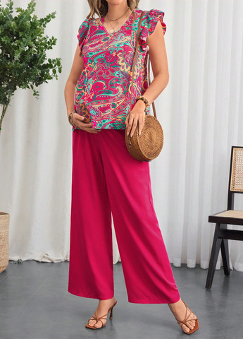Комплект SHEIN для вагітних із 2 предметів. Цей повсякденний комплект включає блузку-топ та вільні штани. Блузка з вирізом серцем і рукавами-бішоп. Штани широкі, із еластичним поясом. Комплект підходить для повсякденного носіння. Догляд: машинне прання або хімчистка.