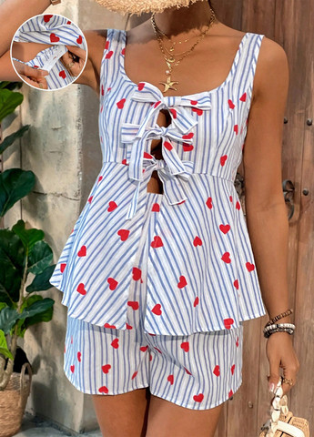 Комплект одягу для вагітних SHEIN з 2 предметів. В комплект входять блузка з V-подібним вирізом та міні-шорти. Візерунок в горошок. Шорти без підкладки. Машинне прання, щадний режим.