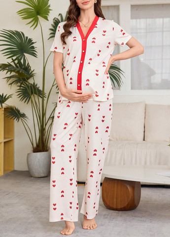 Піжамний набір для вагітних. Вільний крій та V-подібний виріз. Підходить для повсякденного носіння. Машинне прання, щадний режим.