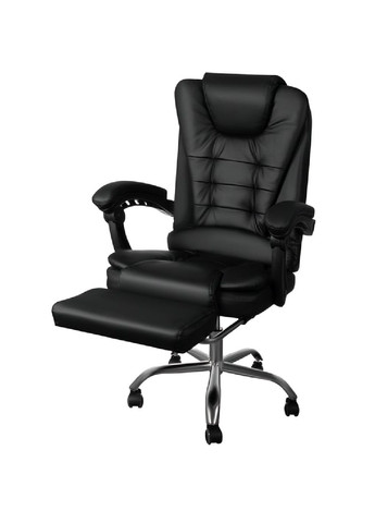 Офісний стілець, що ідеально адаптується до фігури сидячого, оббитий м'якою еко-шкірою. Його профіль забезпечує максимальний комфорт навіть після багатьох годин сидіння. Додатково, крісло має подвійний шар губки, що значно підвищує комфорт використання. Високий вбудований підголівник і відповідний профіль гарантують функціональність і підтримку голови, а широке сидіння дасть змогу працювати протягом багатьох годин. Підлокітники м'які та зручні, що знижує біль у ліктях і навантаження на хребет. Особливості: - гумові колеса - п'ятизіркова основа з хромованої сталі - висувна підставка для ніг - регульована висота сидіння - функція розгойдування і нахилу крісла Характеристики: - колір матеріалу: чорний - матеріал: екошкіра - основа: хромована сталь - колеса: гума - основа крісла: хрестовина з коліщатками - механізм: важіль (метелик) - максимальне навантаження: до 130 кг - розміри (ШхВ): - загальний розмір крісла: 102-110 см - підставка для ніг: 38 х 22 см - сидіння: 51 х 46 см - спинка: 66,5 х 50 см - вага крісла: 16 кг - вага з упаковкою: 17,8 кг.