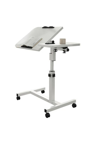 Столик з регулюванням висоти пересувної – це портативність, зручність та комфорт в одній моделі. Він не тільки дозволяє облаштувати собі робоче місце вдома, а й підкреслює інтер'єр вашого будинку своїм мінімалістичним дизайном. Металева конструкція Каркас столика виготовлений із міцної сталевої труби з порошковим покриттям, що забезпечує стабільність та довговічність. А для панелі виробник обрав високоякісний ДВП, що надає стійкості до ваги. Такий матеріал легко чистити і мити від забруднень: достатньо лише протерти вологою серветкою! Він досить легкий і витримує навантаження до 10 кг. Стільниця столика здатна регулюватися, що дозволяє вибрати зручний для вас нахил. Три рівні регулювання висоти адаптують місце до вашого зростання та забезпечують комфортне використання ліжка, дивана чи крісла. Ідеальне робоче місце Вам не потрібно витрачати багато часу, щоб зібрати столик, адже він має легку конструкцію та поставляється з усіма необхідними елементами. Стіл розроблений із запобіжним фіксатором, щоб уникнути зісковзування ноутбука. Якщо стіл не використовується, його можна нахилити у вертикальне положення та зберігати у кутку кімнати. Його можна облаштувати біля ліжка, якщо ви захворіли, або використати для смачного сніданку біля телевізора. Характеристики: ● Тип: Комп'ютерні столи ● Призначення: Для дому ● Країна виробник товару: Китай ● Країна реєстрації бренду: Україна ● Висота: має три рівні регулювання ● Максимальна діагональ ноутбука: До 17,3 дюймів ● Максимальне навантаження: До 10 кг ● Додаткові характеристики: Пластикова підставка під планшет на стільниці – 25х2х2 см; ● Нижня відстань від підлоги до металу – 4 см; ● Нижня стійка столика (основа) – 59х40 см; 5 см; ● Висота регулюється від 62 до 94 см; ● Діаметр трубки тримача стільниці – 2см Комплектація: ● Колеса – 4 шт., ● Кріплення стільниці – 2 шт., ● Регулювальний болт – 2 шт., ● Викрутка – 1 шт., ● Ключ – 1 шт., ● Заглушки для трубки – 2 шт., ● Болти, гайки, шурупи, ● Інструкція китайською мовою