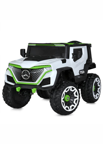 Артикул M 5912EBLR Бренд NO TM / Mercedes-Benz Тип джип Розміри товару довжина 131см ширина по дзеркалах/ колесам 82см/80см висота 76см вага 31кг відстань від сидіння до педалей 34см Допустиме навантаження За вагою до 30кг За віком від 3-8 років Мотор Кількість/V/RPM 4*25W / 12V / RPM15000 Батарея Кількість/V/AH 12V10AH Індикатор батареї + Заряджання V/mA 12V/1500mA Час на зарядку 8-10год Індикатор заряджання + Старт Старт з кнопки Звук під час старту + Плавний старт у звичайному режимі + Швидкість км/год 6км/год Кількість швидкостей на панелі/на пульті 1/3 Педаль газу + Педаль-гальмо - Світло Фари Передні/Задні Підсвічування Лобове скло, решітка радіатора Кнопка вмик/вимик світла + Звук Музика MP3+USB, AUX Карта пам'яті + Сигнал на кермі BLUETOOTH + Управління Пульт керування 2,4G(STOP BUTTON) App(додаток) + Рух вперед/назад з кнопки Сидіння кількість місць 1 Ремені безпеки 2-х точкові Матеріал екошкіра Ширина посадкового місця 44см Колеса Матеріал EVA Розмір передніх коліс/дисків 37см/26,5см Розмір задніх коліс/дисків 37см/26,5см Простий монтаж + Корпус Матеріал пластик Дах - Амортизатори Передні - Задні + Додаткові функції Двері відчин. + Демо-режим - Бат.ручка - Дод. Коліщатка - Кондиціонер - Килимок - Причіп - Додаткові елементи Картрідер SD/TF карт, позаду кріпиться запасне колесо КОРОБКА Брутто/Розмір 36,5кг/118-73-63см Кількість шарів 5