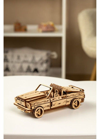 Ретро автомобіль UGR-T – новий неперевершений конструктор у колекції автомобілів Ugears. Ця вінтажна модель символізує початок епохи авто. Цікаві особливості моделі включають: функціональний відкидний дах з тканини, фіксацію дверей відкривається кабіни, капот, що піднімається, демонструючи функціональний 4-циліндровий двигун з колінчастим валом, маятник, що імітує звук гуркотливого мотора, передні колеса, які повертаються за допомогою керма, і у задній частині автомобіля. Щоб запустити автомобіль Ретро UGR-T, встановіть кнопку «Пуск/Стоп» у положення «Стоп» і заводьте двигун із пружинним приводом за допомогою вбудованого ключа під шасі. Поставте модель на плоску поверхню, тримаючи її однією рукою, натисніть "Пуск", потім відпустіть і подивіться, як вона рушає. Автомобіль має передню, нейтральну та задню передачу. Характеристики Механічного пазла 3Д Ukrainian Gears Ретроавтомобіль 337 ел: 337 деталей, має рівень складності «підвищений»; орієнтовний час збирання – 7 годин; виконано із якісних деревних матеріалів; збирається із готових деталей без клею.