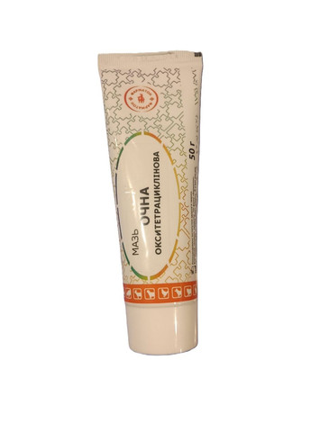 Мазь очна. Вид тварин: велика рогата худоба вівці, кози свині коні собаки коти хутрові звірі (лисиці, песці, норки, нутрії) кролики Мазь від світло-жовтого до жовто-коричневого кольору. Застосування: лікування великої рогатої худоби, коней, овець, кіз, свиней, собак, кішок і кроликів, хворих на кон'юнктивіт, кератит, виразку рогівки та інших захворювань очей, спричинених мікроорганізмами, чутливими до окситетрацилину. Дозування: мазь закладають скляною лопаточкою або вводять через канюлю шприц-туби (надійно зафіксувати голову тварини) нижньої повіки 1-2 рази на день до одужання. Протипоказання: підвищена чутливість до окситетрацикліну. Застереження: немає Форма випуску: пластикові контейнери або туби по 20, 45, 50, 100, 200, 300 г і шприц-туби по 10 г. Зберігання: сухе темне недоступному для дітей місці при температурі від 5 до 25 ° С. Термін придатності - 2 роки.