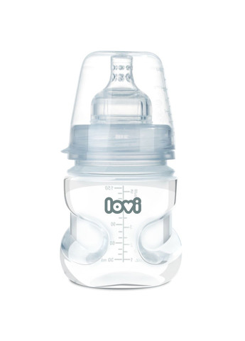 Пляшечка Lovi (Лові) PP Super vent стимулює активне ссання і дозволяє поєднувати грудне вигодовування з годуванням з пляшечки. Основні переваги: стійка до пошкоджень має чітку мірну шкалу, нанесену за допомогою нової технології друку, що не дозволяє фарбі стиратися соска стискається і розтягується, як маминий сосок, відповідно до природного ритму ссання, стимулюючи м'язи ротової порожнини до активної напруженої роботи широка основа соски дає можливість малюкові міцно обхопити соску губами, що сприяє вільному диханню через ніс і запобігає інстинктивному кусанню соска оснащена покращеною антиколіковою системою виходу повітря не містить Бісфенол-А Характеристики Комплектація: динамічна соска від 0 місяць ковпачок із мірною шкалою (дуже зручно для подачі ліків або фруктових пюре) еластичний ущільнювальний диск – перетворює пляшечку на контейнер для зберігання або заморозки молока Матеріал: пляшка – поліпропілен соска – силікон Об'єм: 150 мл Видавництво: Lovi, Польща. Рекомендовано для дітей від народження.