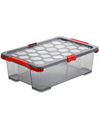 Контейнер для зберігання пластиковий із кришкою Rotho Evo Total 30 л (10085) Прозорий дизайн коробки та кришки Об'єм: 30 л Розміри: 590 x 395 x 185 мм Матеріал: пластик Кришка з засувками Колір: прозоро-сірий/крисний Надійно закривається кришкою Міцний, легкий у догляді пластик Якщо ви хочете організувати свою будівлю систематичним способом, ідеальним рішенням є пластиковий контейнер 30 л EVO TOTAL PROTECTION від Rotho. Розмір допускає різні способи його використання. У них можна зберігати маленькі та величезні речі, але можна вживати й тару, наприклад, у дитячій кімнаті. Ті, які вам зараз не потрібні, можна розмістити один в одному. Ящики з кришками можна так само легко укладати один на одного. З їхньою допомогою можна створити лад у невеликому просторі. Міцна коробка EVO TOTAL PROTECTION від Rotho 30 л захищає вміст і ущільнює від вологи та бруду. Вбудовані арматури запобігають розтріскуванню кутів. Ручки ящиків вирізняються особливою стійкістю. Тож проблем із перенесенням навіть важких ящиків не виникає. Пластиковий ящик безпечний для їжі та, звісно, без шкідливих речовин. Контейнери для зберігання Evo Total для зберігання речей у вашому домі. Вони підходять для зберігання в гардеробних, шафах, коморі, на кухні. У ящиках можна зберігати взуття, іграшки, аксесуари для косметики та багато іншого. Також підходять для зберігання харчових продуктів. Контейнери щільно закриваються, їх зручно ставити один на одного та легко миються. Контейнер виготовлений із високоякісного пластику. Ящики для зберігання ЕВО ТОТАЛ щільно закриваються кришкою й надійно захищають об'єкти від пилу та вологи. Прозорий пластик з простим і елегантним дизайном створює ідеальний міст між функціональністю й естетикою. Ящики для зберігання лінійки Evo Total доступні в декількох розмірах, які узгоджені один з одним і в такий спосіб можуть бути об'єднані в міру потреби для створення органічної системи.