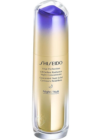 Сповільніть старіння і поверніть собі молодість за допомогою нічного концентрату для обличчя бренда Shiseido, який зробить все за вас під час сну. Засіб збагачений натуральними та інноваційними компонентами, які зміцнюють природну антигравітаційну систему епідермісу. Б'юті-продукт повертає пружність, гладкість, підтягує шкірний покрив і підтримує каркас шкіри зсередини, завдяки чому обличчя набуде доглянутого, молодого і відпочилого вигляду. Особливості Shiseido Vital Perfection LiftDefine Radiance Night Concentrate: - екстракт солодки активізує м'язи, відповідальні за провисання контуру обличчя;- стимулює саморегенерацію епідермісу;- прискорює загоєння ранок і мікротріщин;- активізує відновлення і оновлення шкіри під час сну;- полегшує проникнення корисних речовин у глибокі шари;- інтенсивно впливає на в'ялий епідерміс;- дає змогу провести масаж, націлений на підкреслення рис обличчя;- підвищує пружність і еластичність;- підтягує шкірний покрив;- дарує природне сяйво;- підходить для всіх типів епідермісу;- має легкий аромат;- протестована дерматологами;- економно витрачається – вистачає на 2,5 місяці щоденного застосування;- згладжує зморшки і тонкі лінії;- усуває причину млявості шкіри за рахунок впливу гравітації;- корегує лінії підборіддя і вилиць за 2 тижні;- NightG3N3 повертає гладкість і шовковистість шкіри;- підходить для всіх жінок старше 40 років;- не провокує появи комедонів.