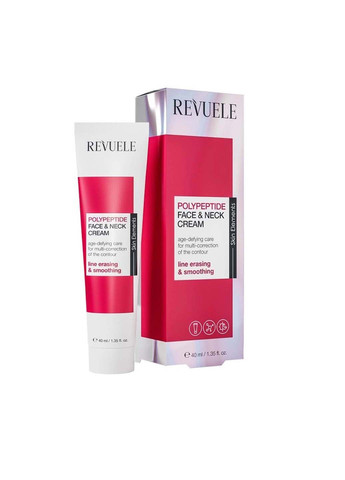 Інтенсивний антивіковий зволожувач, що розгладжує текстуру шкіри, зменшуючи появу тонких ліній та зморшок. Він створений для того, щоб зробити обличчя більш пухким, омолодженим, а також підтягнути контур обличчя. Формула поєднує численні пептидні молекули з багатим комплексом зволоження, щоб значно покращити пружність та м'якість шкіри, зміцнюючи захисний бар'єр. Глибоко зволожена без жирного сліду шкіра відчувається і виглядає помітно оновленою та підтягнутою. Цей збагачений пептидами крем допомагає підтримувати рівень колагену, отже, природний процес оновлення шкіри, особливо у поєднанні з Revuele Polypeptide сироваткою для обличчя та шиї. Нанесіть на чисту суху шкіру обличчя та шиї легкими рухами до повного вбирання. Використовувати вранці та ввечері.