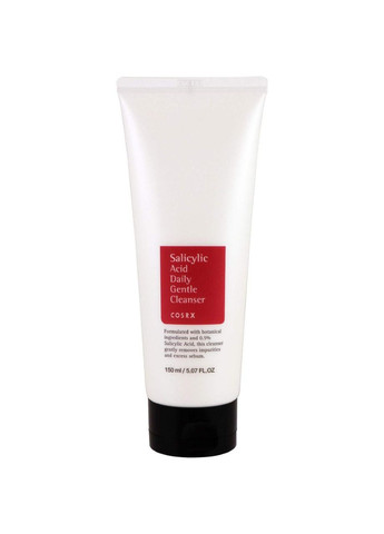 Cosrx Salicylic Acid Daily Gentle Cleanser - пінка для вмивання, яка ефективно очищає шкіру від різного виду забруднень і вирівнює поверхню. чорними крапками. Корейська пінка для очищення обличчя «Cosrx» попереджаючи утворення запальних процесів. активні компоненти пінки для вмивання: 100ppm органічна саліцилова кислота, екстракт кори чорної верби, маристинова кислота, олія чайного дерева, екстракт гаультерії лежачої. Саліцилова кислота дезінфікує шкірний покрив і чинить антибактеріальну дію. роздратування та прискорює процес мікроциркуляції крові. Спосіб застосування: нанести пінку на вологу шкіру і дбайливо помасажувати, вмитися теплою водою. Обсяг: 150мл. Склад: Water, Glycerin, Myristic Acid, Stearic Acid, Potassium Hydroxide, Lauric Acid, Butylene Glycol, Glycol Distearate, Polysorbate 80, Sodium Methyl Cocoyl Taurate, Salicylic Acid, Cocamidopropyl Betaine, PEG-6 Sodium Chloride, Melaleuca Alternigolia (Tea Tree) Leaf Oil, Caprylyl Glycol, Ethylhexylglycerin, Salix Alba (Willow) Bark Water, Saccharomyces Ferment, Cryptomeria Japonica Leaf Extract, Nelumbo Nucifera Leaf Extract, Pinus Palustris Leaf (Evening Primrose) Flower Extract, Pueraria Lobata Root Extract, 1,2-Hexandiol, Ethyl Hexanediol, Ctric Acid, Disodium EDTA.