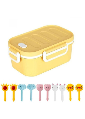 Ланч-бокс з оригінальним дизайном і набором із 10 пластикових міні-виделок для фруктів у вигляді тварин (3,8 см). У комплекті – 5 різних видів (по 2 виделочки кожного). Види відповідають фото, але кольори можуть відрізнятися. Компактний і легкий ланч бокс буде ідеальним для дітей до школи, що має герметичну кришку, зручні два яруси. Збираєте корисні перекуски для дитини в школу? Потрібен зручний контейнер для їжі на пікнік? Збираєтеся в похід? У нас є ідеальний ланч-бокс на всі випадки життя! Якісний, герметичний, зручний PP пластиковий ланч-бокс має герметичний нижній відділ і верхній відділ для снеків. Оптимальний об'єм для того, щоб взяти все необхідне для ланчу з собою. Герметичний нижній ярус Корпус із харчового пластикуМожна гріти в мікрохвильовціНе великі розміри та великий об'єм Об'єм: 1000 мл Розмір: 20,2 x 13,23 x 8,4 см