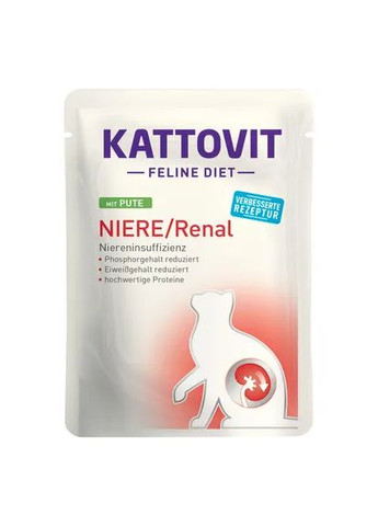 Повноцінний і збалансований дієтичний корм для собак, які страждають порушенням функції нирок. Показання: • нутритивна підтримка собак із хронічною нирковою недостатністю; • дієта підходить для собак із кардіоренальним синдромом; • низький вміст пуринів при уратному та цистиновому уролітазі. Не підходить для: • цуценят; • вагітних або годуючих собак. Переваги: • легкозасвоюваний білок для підтримання м'язової маси та фізичного стану; • пригнічує всмоктування фосфору в кишечнику; • відсутність ризику виникнення алергії на глютен або глютенової ентеропатії; • низький глікемічний індекс для профілактики ожиріння; • протизапальна дія та антиоксидантний захист тканин. Спосіб використання: Хронічна недостатність нирок: Більшість собак із хронічними захворюваннями нирок страждають втратою апетиту або анорексією, спричиненою впливом уремічних токсинів на слизову оболонку шлунково-кишкового тракту. При анорексії катаболізм білків збільшує вироблення уремічних токсинів, погіршуючи фізичний стан. Прийом їжі має підтримуватися, і необхідно поступово переходити зі звичної їжі вашого собаки до корму Brit VD Renal Dog. ІНСТРУКЦІЯ З ГОДУВАННЯ. Проконсультуйтеся з ветеринаром з приводу використання дієтичного корму Brit VD – якщо він поєднується з сухим кормом Brit VD Dog Grain Free Renal, зменшуйте дозу відповідно. Початковий період годування повинен тривати не менше 6 місяців. Перед використанням або перед продовженням терміну використання рекомендується проконсультуватися з ветеринаром. Переконайтеся, що собака завжди має доступ до свіжої питної води. Зберігати в сухому та прохолодному місці. Після відкриття зберігайте банку в холодильнику і використайте її протягом 2 днів. Термін придатності та номер партії знаходяться на дні упаковки. Склад: тунець (35 %), лосось (20 %), зелений горошок (4 %), масло лосося (2 %), горохове борошно, карбонат кальцію, цитрат калію (0,5 %) сушені водорості, хітозан (0,02 %), мананолігосахариди (0,005 %), фруктоолігосахариди (0, 005 %) Юка Шидігера (0,004 %), β-глюкани (0,004 %), обліпиха (0,003 %). АНАЛІТИЧНІ КОМПОНЕНТИ: сирий протеїн 7,0 %, сирий жир 7,5 %, сира зола 2,0 % вологість 78,0 %, сира клітковина 1,0 %, кальцій 0,1 %, фосфор 0,1 %, калій 0,3 %, аргінін 0,15 %, таурин 0,1 %, омега-3 0,3 %, омега-6 0,2 %. ХАРЧОВІ ДОБАВКИ НА 1 кг: вітамін А 5000 МО, вітамін D3 200 МО, вітамін Е 150 мг, вітамін С 100 мг, біотин 0,5 мг, цинк 60 мг, залізо 15 мг, марганець 15 мг, йодид калію 0,8 мг, мідь 1 мг, селен 0,05 мг, таурин 500 мг, L-карнітин 80 мг, L-аргінін 700 мг. Енергетична цінність: 1 120 ккал/кг