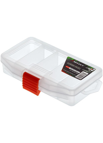 Коробка Select Lure Box SLHS-1005 має 5 поперечних комірок із фіксованими перегородками. Верхня кришка обладнана надійними поворотними петлями та довговічною застібкою. Коробка може використовуватися для зберігання невеликих спінінгових приманок, грузил і джиг-головок. Завдяки своїм невеликим габаритам, коробка легко поміститься в кишеню рибальської куртки або жилета, а також у поясну сумку. Коробка Select Lure Box максимально пристосована для зберігання приманок і рибальських аксесуарів. Для її виробництва використаний практичний пластик, що витримує деякі ударні навантаження й не входить у реакцію з різними силіконами. Широкий асортимент моделей різних габаритів і комбінацій внутрішніх комірок допоможе підібрати коробку для зберігання приманок практично будь-якого розміру.