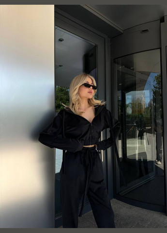 Монохромний, однотонний дизайн підкреслює універсальність костюма — він легко комбінується з аксесуарами, різним взуттям та верхнім одягом. В залежності від стилізації, може бути стриманим офісним сетом або ж розслабленим повсякденним луком для прогулянок, подорожей, зустрічей з друзями.