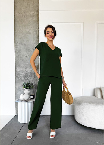 Відкрийте для себе стильний і комфортний костюм на кожен день! Наші прямі штани на резинці з американського крепу забезпечують не лише свободу рухів, але й бездоганний вигляд. А футболка з розрізами та елегантним V-подібним вирізом додає неповторної жіночності вашому образу. Цей легкий, яскравий і універсальний комплект легко комбінується з кедами, босоніжками чи навіть підборами, що робить його ідеальним вибором для щоденного носіння або відпочинку. Створюйте свіжий і сучасний образ, який підкреслить вашу індивідуальність! Не пропустіть можливість додати цей стильний костюм до вашого гардеробу!