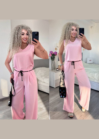 Яскравий костюм з американського крепу — чудовий вибір для літнього сезону. Футболка з коротким рукавом, деталі з термоналіпки. Штани вільного крою з гумкою на талії й бічними кишенями. Додайте свіжості та яскравості до вашого літнього гардероба з цим костюмом від нашого бренду.