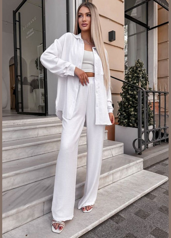 Знову в наявності,в кількості❗️ Суперовий трендовий брючний костюм з креп жатки :🌷 •обʼємний та розкішний по супер ціні ❗️ •сорочка вільна з карманом,з спущеним рукавом, з манжетами, на ґудзиках, з розрізами по низу; •штани расширені, с кишенями, пояс на резинці, •стильний, зручний комфортний •має бути у гардеробі кожної дівчини на будь-який випадок🩷 Тканина: американський жатий креп, преміуміальний Тканина Туреччина дуже приємна на дотик Гарна якість пошіття та тканини, Гарна кольорова політра🩷🩵 Кольори: рожевий, пудра, малина, лаванда, блакитний, джинс, світло-бежевий, темно- бежевий, моко, чорний, білий,