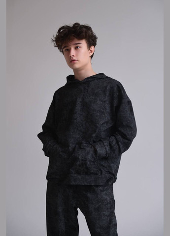 Худі вільного крою з довгим рукавом гарантує повну свободу рухів, а м’який капюшон надійно захистить голову від вітру та легкого дощу. Манжети на рукавах та внизу виробу допомагають зберегти тепло, а також додають виробу акуратного вигляду. Штани-джогери з високою посадкою та широкою еластичною резинкою забезпечують комфортну фіксацію на талії, не тиснуть і не сповзають під час активних рухів. Завдяки продуманому крою вони виглядають стильно та пасують будь-якому типу фігури.