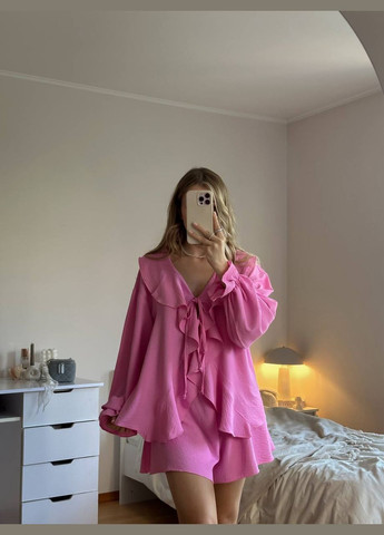Колір Рожевий / Фасон З сорочкою, Брючний / Стиль Повсякденний / Візерунок Однотонний / Матеріал Креп