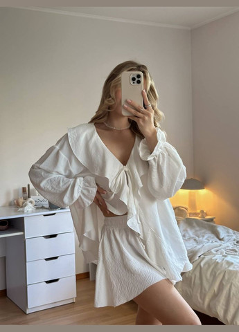 Колір Білий / Фасон З шортами, З сорочкою / Стиль Повсякденний, Кежуал / Візерунок Однотонний / Матеріал Креп