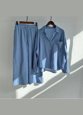 Цей костюм підходить як для повсякденного носіння, так і для відпочинку на пляжі або прогулянок містом. Комбінація сорочки та шорт створює стильний та свіжий образ, підкреслюючи жіночність та легкість.