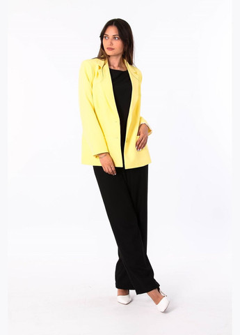 Піджак подовжений жіночий , виріз горловини - відкладний комір, сезон - демісезонний, стиль - діловий, колір - жовтий, принт - однотонний , тканина - костюмна віскоза , склад - 58% поліестер, 40% віскоза, 2% еластан, особливості крою- прямий, довжина моделі- подовжена, довжина рукава- довгі рукава.