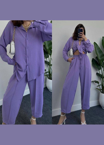 Стильний костюм — ідеальне поєднання комфорту, елегантності та трендової текстури. Легка, дихаюча тканина з ефектом жатки не потребує прасування, тож завжди виглядає акуратно навіть після активного дня. Вільний крій забезпечує зручність у русі, а сучасний силует підкреслює фігуру й додає образу шарму. Костюм підходить як для офісу, так і для неформальних виходів — легко поєднується з кедами, босоніжками чи підборами. Ідеальний варіант для тих, хто цінує стиль без зайвих зусиль!