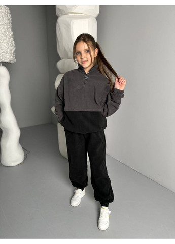 Теплий костюм з якісного флісу полар — ідеальний вибір для прохолодної погоди. Штани середньої посадки на резинці з кишенями забезпечують зручність і комфорт, а кофта з повною застібкою на молнію та кишенями на молнії додає практичності та стильного вигляду. Цей костюм поєднує тепло, комфорт і функціональність, роблячи його чудовим варіантом для повсякденних прогулянок або активного відпочинку.