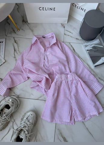 Колір Рожевий / Фасон З шортами, З сорочкою / Стиль Повсякденний, Вечірній, Пляжний, Кежуал / Візерунок Смужка / Матеріал Льон