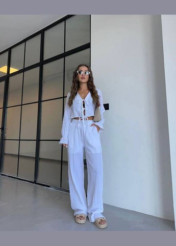 Такий костюм із жатого льону буде чудовим вибором для будь-якого випадку, пропонуючи стиль, комфорт та функціональність.