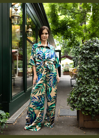 Костюм 4 в 1 Тканина - натуральний штапель Розміри - 42-46 універсальний Кольори - беж, чорний, блакитний Костюм для тих, хто зібрався на каву, а опинився на Міконосі. Комплект із 4 стильних елементів: хустинка, кроп-топ з акцентним зав’язуванням, вільна сорочка оверсайз і шорти з високою талією Щоб не думати, що з чим поєднувати, одягла — і одразу богиня відпочинку. Легка натуральна тканина, дуже красивий принт - море компліментів гарантовано